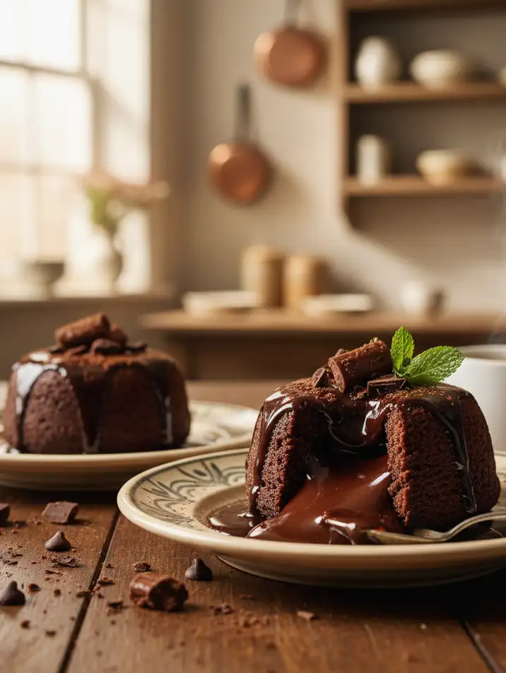 - Abkühlen lassen: Die Kuchen nach dem Backen 1-2 Minuten in den Formen ruhen lassen, dann vorsichtig auf Teller stürzen.