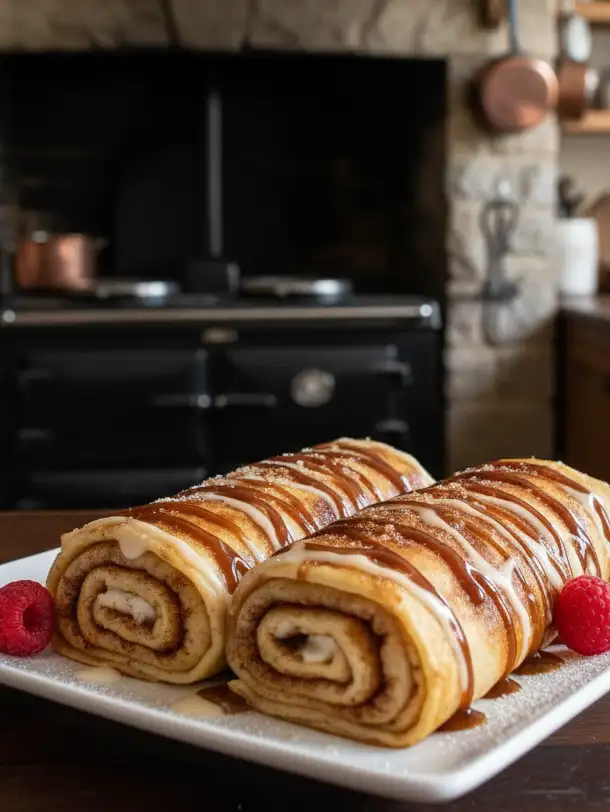 - Servieren: Die Zimtschnecken-Käsekuchen-Chimichangas warm servieren, nach Belieben mit Schlagsahne oder einer weiteren Portion Frischkäseglasur garnieren.