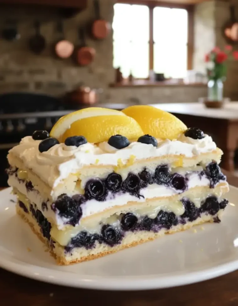Der Zitronen-Blaubeer-Eiskuchen ohne Backen ist eine erfrischende und köstliche Dessert-Alternative, die perfekt für warme Tage oder besondere Anlässe geeignet ist. Die Kombination aus spritziger Zitrone und süßen Blaubeeren sorgt für ein Geschmackserlebnis, das sowohl erfrischend als auch dekadent ist. Dieser Eiskuchen ist nicht nur einfach in der Zubereitung, sondern begeistert auch durch seine schöne Farbgebung und die fruchtige Frische, die jeden Biss zu einem Genuss macht.