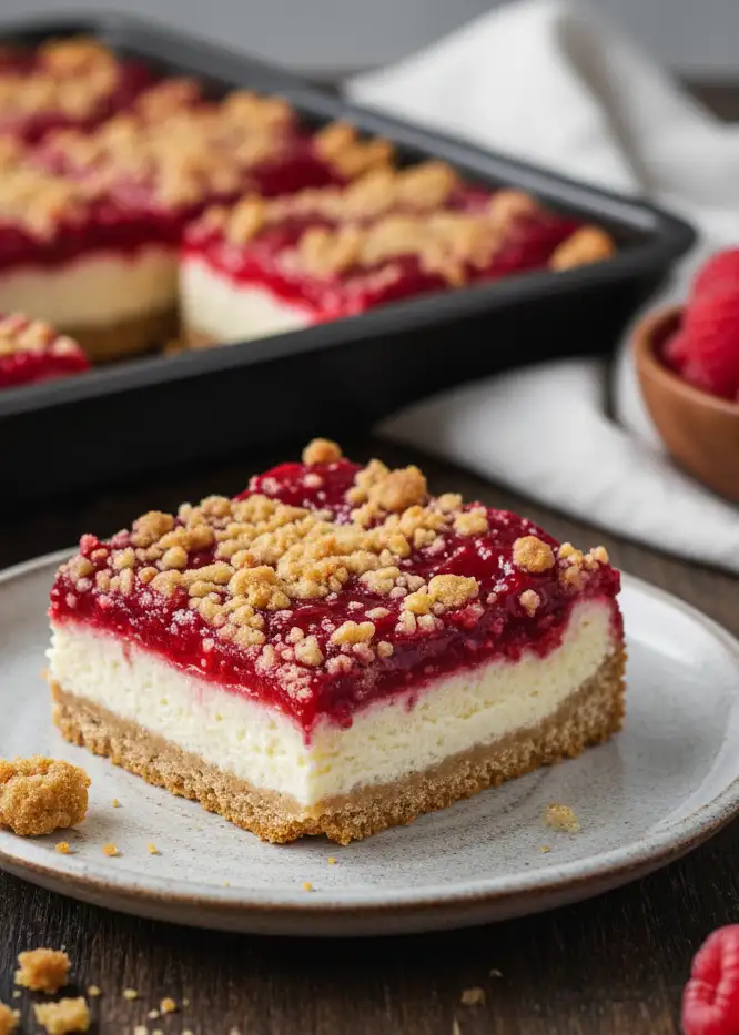 Der Zitronen-Himbeer-Käsekuchen-Crunch-Riegel vereint die frische Säure der Zitrone mit der süßen Fruchtigkeit der Himbeeren – ein Traum für alle Käsekuchen-Liebhaber! Diese Variante überzeugt nicht nur durch ihren unwiderstehlichen Geschmack, sondern auch durch ihre cremige Textur und den knusprigen Boden. Perfekt für sommerliche Kaffeetafeln, Geburtstage oder einfach als süße Belohnung zwischendurch. Dank der Kombination aus Frischkäse, Crème Fraîche und Joghurt wird die Füllung besonders saftig und cremig, während der Butterkeksboden für den nötigen Crunch sorgt. Himbeeren und Zitrone bringen nicht nur Farbe auf den Teller, sondern auch wertvolle Antioxidantien und Vitamin C – ein Kuchen, der nicht nur lecker, sondern auch ein kleines Gesundheitsplus bietet.
