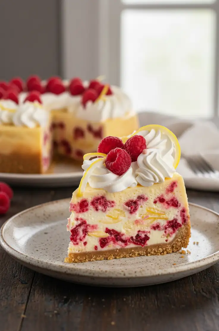 Der Zitronen-Himbeer-Käsekuchen vereint die frische Säure der Zitrone mit der süßen Fruchtigkeit der Himbeeren – ein perfekter Kuchen für warme Tage, Familienfeste oder einfach als süße Verführung zwischendurch. Die Kombination aus cremigem Käsekuchen, knusprigem Keksboden und fruchtigem Himbeertopping macht ihn zu einem echten Highlight auf jedem Kaffeetisch. Besonders praktisch: Du kannst sowohl frische als auch tiefgekühlte Himbeeren verwenden, ohne dass der Geschmack leidet. Dank der gesunden Inhaltsstoffe der Himbeeren und Zitrone ist dieser Kuchen nicht nur lecker, sondern auch eine kleine Wohltat für den Körper.