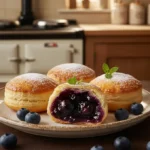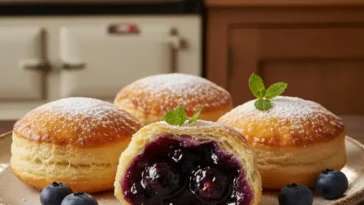 - Teig zubereiten: Den Ofen auf 180 °C (Ober-/Unterhitze) vorheizen. In einer großen Schüssel Mehl, Zucker, Backpulver und Salz vermengen. In einer anderen Schüssel Milch, Öl, Eier, Zitronensaft und -abrieb gut verrühren. Die flüssigen Zutaten zu den trockenen geben und alles zu einem glatten Teig vermengen.