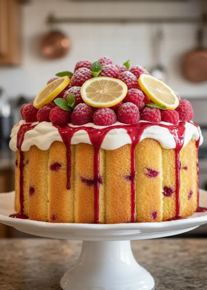 - Servieren: Den Kuchen kühl stellen, damit der Guss fest wird. Vor dem Servieren nach Belieben mit zusätzlichen Himbeeren dekorieren.