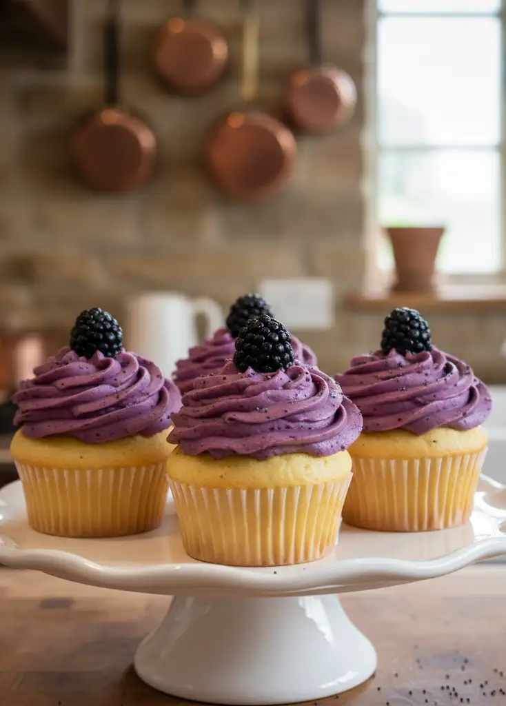 Zitronen-Mohn-Cupcakes mit Brombeerglasur – ein Genuss!