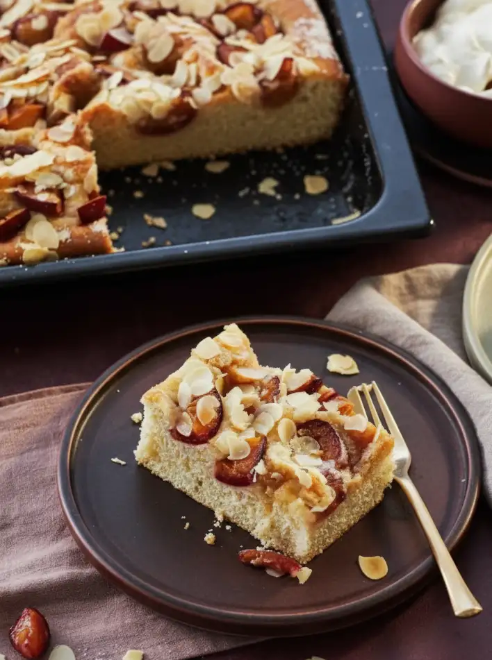 Mandelblättchen verteilen: Streuen Sie die gerösteten Mandelblättchen über die Zwetschgen.